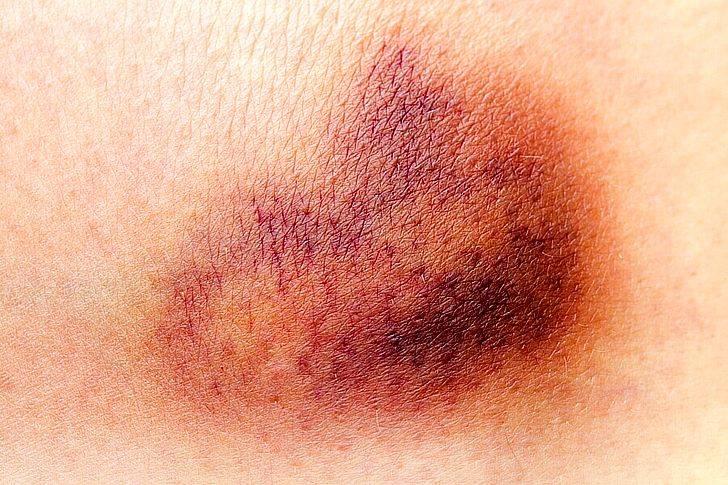 Синяки, возникающие из-за дефицита, могут быть различных размеров – от маленьких фиолетовых точек под кожей до больших кровоподтеков .